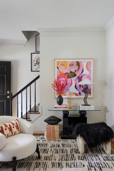 Blush Moderne is a reimagining of a 1980s townhouse through a bold, feminine lens. Instead of erasing its history, we refined it — elevating its dramatic roots with marble surfaces, sculptural wall accents, a custom cheetah stair runner, and a curated stair gallery featuring female artwork. What was once dated is now modern, polished, and unapologetically expressive.